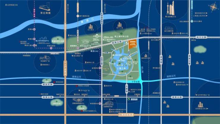 项目位干上海之鱼内,东侧是极具特色的金汇港,水脉碧波倒映生态景观。坐拥约万亩林地,占地面积约4.78平方公里南上海中央公园,更拥享上海之鱼约13公顷环湖景观带和集艺术展览、活力健身、娱乐休闲、游憩观赏为一体的现代城市公园群。