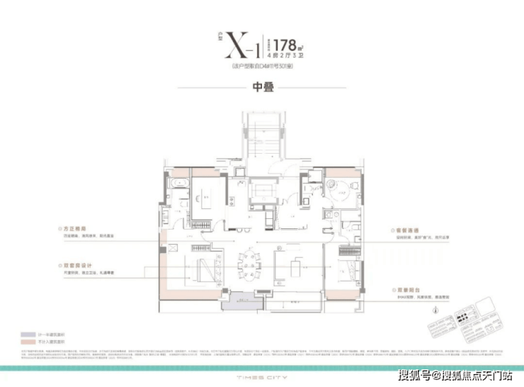 中平户型以四开间朝南的IMAX级采光面,打造出堪比市区豪宅的尺度感。4房4飘窗2阳台的设计,配合双套房布局,一共有三个套房,让每个家庭成员都享有独立私密空间。