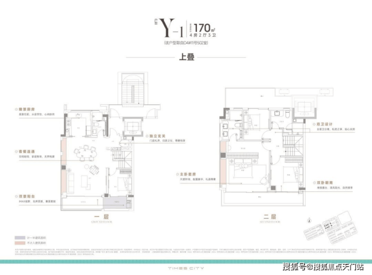 上叠产品创新采用南北双露台+南向双阳台布局,270度全景采光面让室内外空间完美融合。边套户型的1楼客餐厅和2楼主卧,更增设侧飘窗,将社区美景尽收眼底。