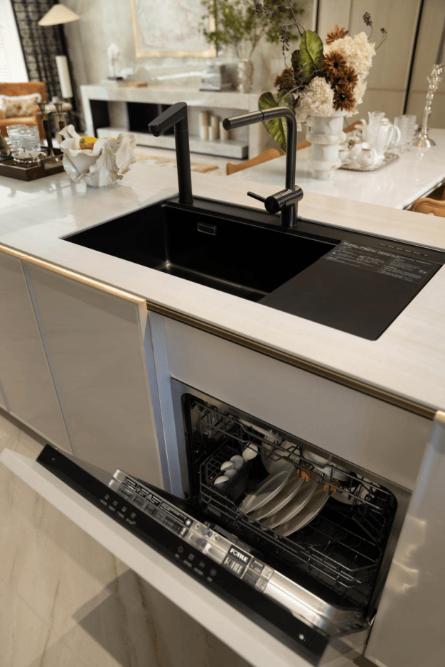 水槽下方预留了电源与空间,为加装净水器、扫地机器人做好准备。