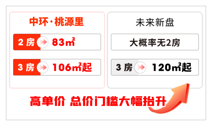 那中环·桃源里600万级83㎡2房,800万级106㎡3房,无论总价还是面积段都将非常珍稀。