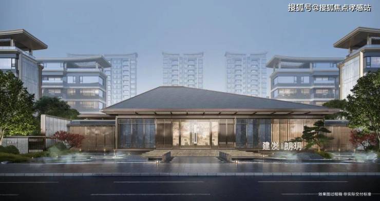 遵循建发中式建筑元素中“儒门”的设计,打造威仪门庭;设计叠水景观及青云桥,为业主营造“群贤毕至,平步青云 ”的归家尊崇。