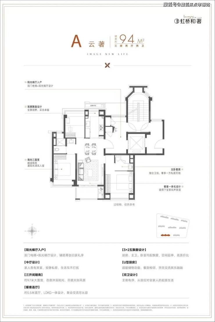“麻雀虽小五脏俱全”虽然相比一般百平米左右三房,该户型在建筑面积上缩减了约10㎡,但功能与尺度却不逊色,南北通透的飞机户型,没有过道浪费,因而保证了适宜的尺度感,LDKG一体化设计让几个功能区独立又互通,没有视觉遮挡也使得将空间感进一步拓展,阳台270°采光+多飘窗设计,打开更多的采光面与视野面,也大大提升了室内的通透感与舒适度,细节方面,次卫干湿分离的设计,提高了使用效率这对于小户型非常重要。