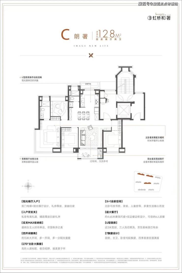 过去很长一段时间,由于土地端7090政策限制,新房产品绝大部分以百平米左右刚需产品为主,而保利虹桥和著官方售楼处:400-1010-064✨✨此次将推出建面约128㎡稀缺舒适四房,本身就是一次难得的改善机遇,更何况该户型设计非常亮眼,四开间朝南设计,尽可能将更多阳光引入室内,主卧270度飘窗+南北通透大套房设计,同级别户型中十分罕见,充分满足舒适度和身份感。