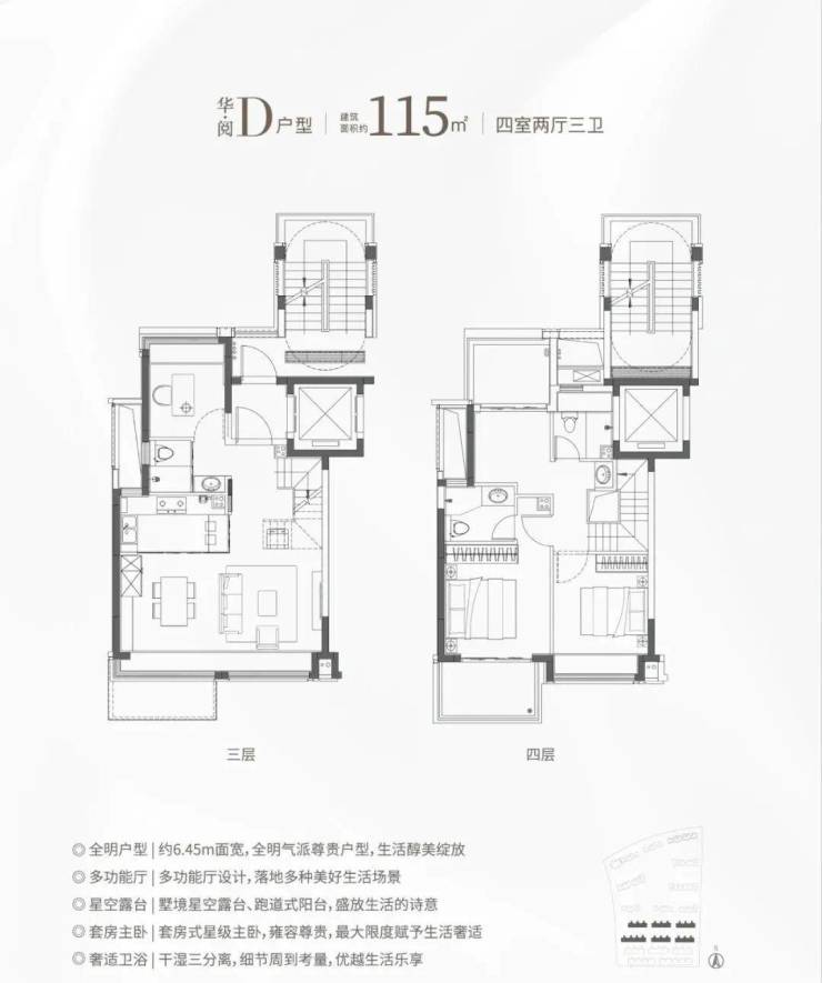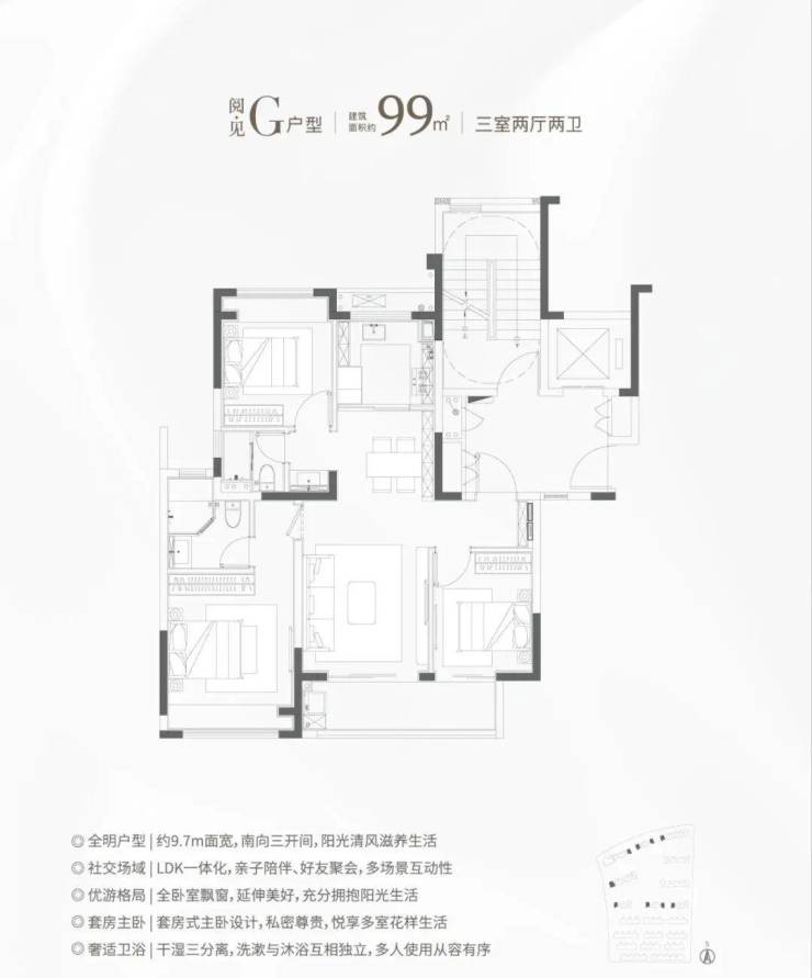 F、G户型均为三开间朝南的三房两卫