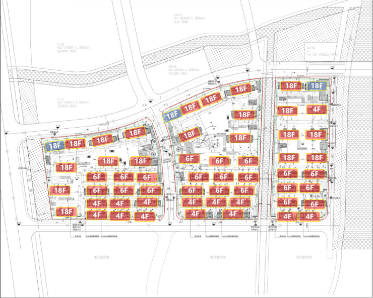 根据项目规划设计方案,拟建56幢4-18F的住宅、保障房以及其他配套用房
