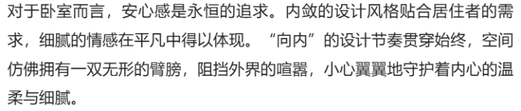 主卧室保留原来的吊顶,自此基础上涂刷艺术涂料,更契合整体风格。调整光源位置,让光影在空间中自由流淌,增添了一份松弛感。