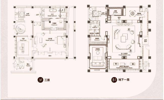 52套别墅,主力建筑面积:地上220-550平,上下5层一层层高约3.6米,二层3.4米,二层3个套房三层是主卧空间+露台地下两层挑空厅再下面一层是私家停️车库