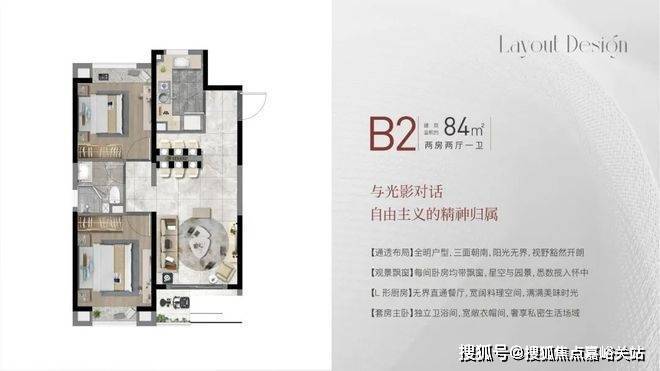 大名城映雨江南售楼处电话📞 400-9966-940☎☎🏠🏠【官方认证】📱✔✔✔建面约84㎡2房2厅1卫,做到了双开间朝南+双卧室带飘窗+动静分离,非常宽敞的2房户型。