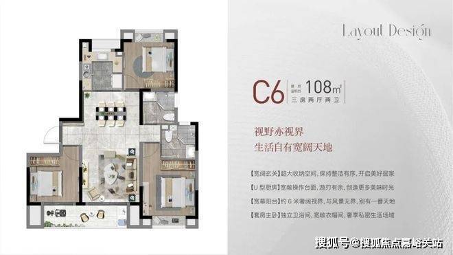 建面约108㎡3房2厅2卫,做到了三开间朝南+双阳台设计+主卧套房设计+南北通透,该户型得房率非常高。大名城映雨江南售楼处电话📞 400-9966-940☎☎🏠🏠【官方认证】📱✔✔✔