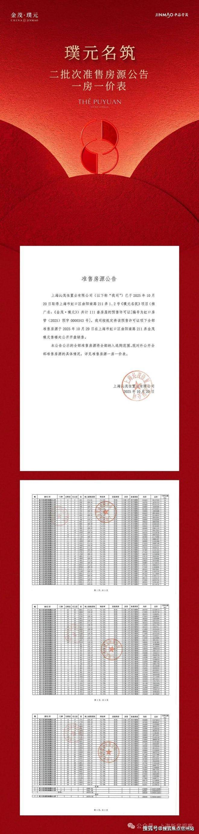 最新消息!上海2025年首个地王“瑞虹地王”金茂+庆隆瑞虹项目正式定名「金茂·璞元」首开售罄,二批次少量建面约126-170㎡3-4房;均价16.8万/㎡,总价约1818-3194万!2000-3000万买房必看!实景示范区现已开放,预约接待!约1700平奢享会所+1F架空层泛会所!