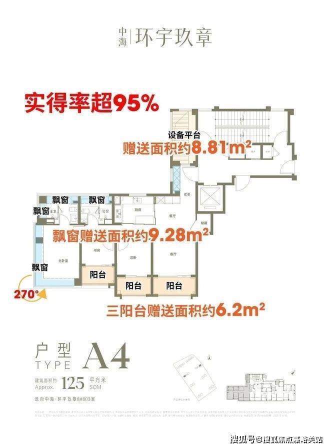 ①、实得率超95%,三阳台+罕见设备平台附赠+全屋飘窗,实用面积堪比常规145户型。
