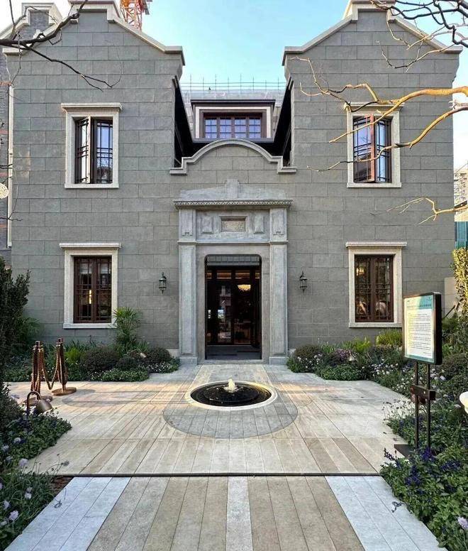 风貌别墅则提取了海派经典元素并进行现代演绎。青砖黛瓦,红色腰线,南向面宽最大的大概能有15米左右,风貌建筑的户型面积段在191-223㎡,共计16套房源总价约3433~4300万,和黄浦风貌新盘相比,总价段比较亲民。