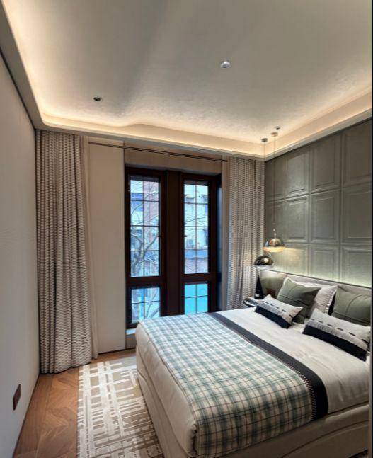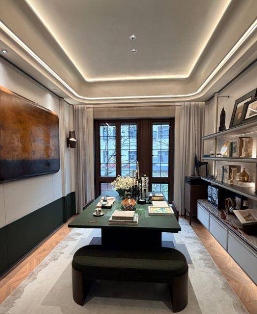 风貌别墅延续了上海石库门风格。青砖黛瓦,红色腰线,南向面宽最大的大概约15米左右。从一扇门、一扇窗中保留和创新,同时区别“里弄式”别墅的小格局、少采光、多浪费;空间布局灵活,满足不同高阶家庭生活需求,递呈出静安苏河畔难得的海派浓荫别墅。