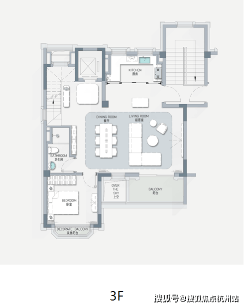 项目通过一楼家庭庭院,二楼星空露台,三楼罗密欧阳台,复原经典的三段式设计规制,还原出武康路罗密欧阳台的经典邬达克式摩登场景。