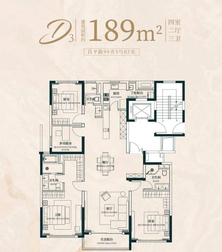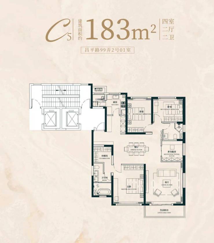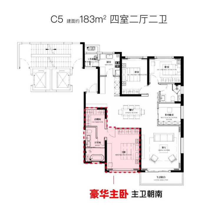 建面约183㎡4房2厅2卫户型: