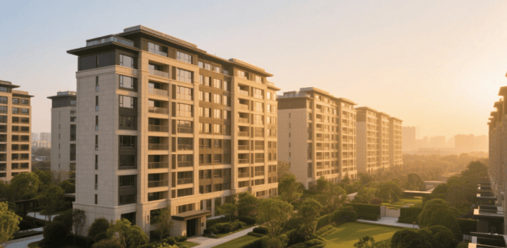 建筑风格:采用现代简约风格,外立面以浅灰色石材搭配金属线条,65% 窗墙比搭配双层中空 Low-E 玻璃,采光与隔音效果俱佳。