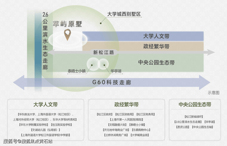 三公里辐射圈内,8所高校(含两所211)华东大学附属实验学校、包玉刚实验学校、文诚幼儿园(弘塔部)等名校环伺,坐拥政务要枢、松江首家三甲医院、繁华商圈皆精粹于此,尽纳墅居版图