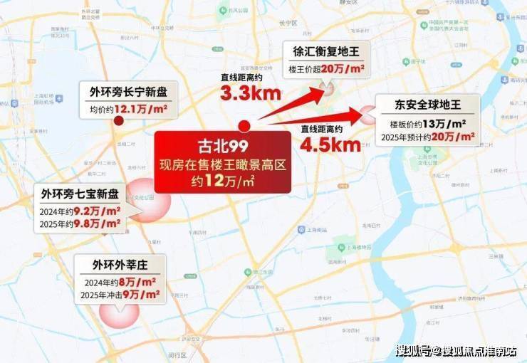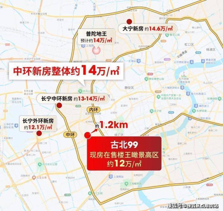 古北99瞰景高区约12万/㎡,且距内环直线仅1.2公里。这不仅是浦西内环旁“地板价”,更是错过难再的绝版机会。