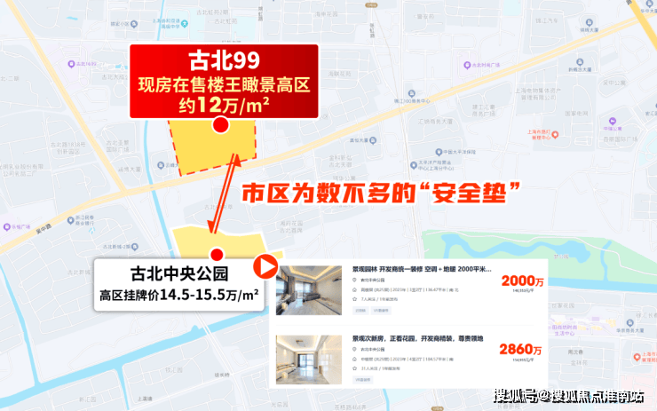 安全垫⑤:一街之隔古北中央公园高区挂牌14.5-15.5万/㎡