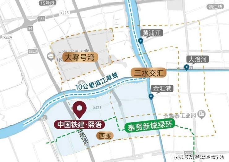 中国铁建熙语预约热线☎:400-8080-420✅✅西渡,不仅北面紧邻上海南部科创中心“大零号湾”,而且向东更是直接被纳入另一个上海市级的战略发展地区重磅规划——“三水交汇之地” 。