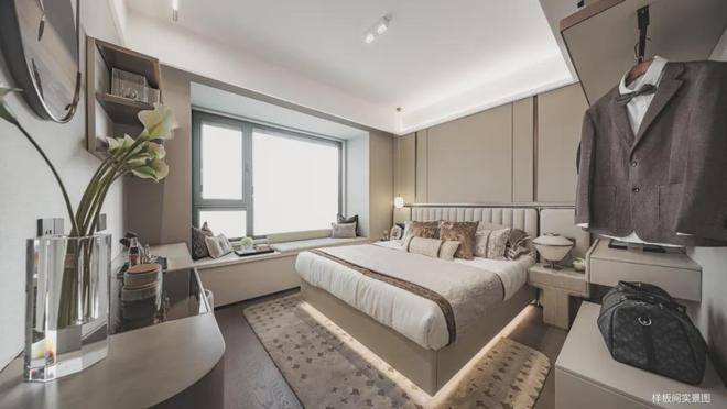 尤其奢阔主卧,南向开窗面积大,床尾支持放置梳妆台,甚至衣柜。