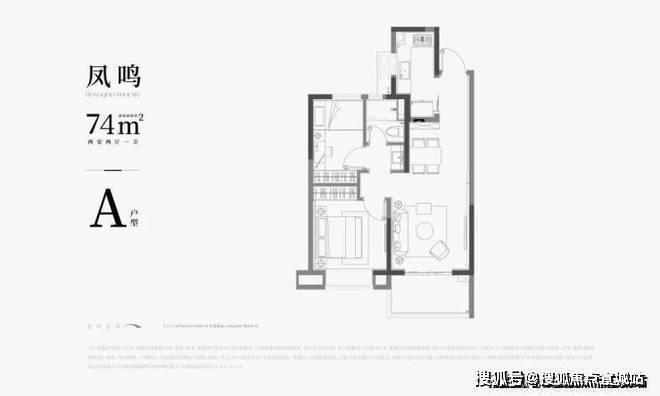 A户型|建面约74㎡2房户型图▼
