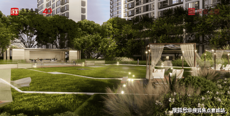 约3600㎡的中央度假草坪,一片绿意葱茏中,孩子们追逐嬉戏,晨练的跑者挥汗如雨,呼吸间是满满的鲜氧。这片草坪不仅是社区的核心景观,更是我们工作之外的微度假呼吸聚场——跑步、露营、野餐、晒太阳,每一种休闲方式都能在这里找到归属。