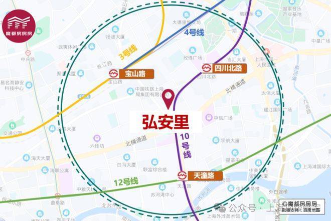 上海弘安里地处虹口内环内北外滩核心,距外滩约500米。北外滩总开发体量约840万方(约等于2个陆家嘴),规划有16座超高层建筑,包括480米浦西第一高楼,以世界会客厅为定位,承担国际航运、高端商务和文旅地标等功能;已吸引35家跨国公司地区总部,100余家各类⼤型企业总部⼊驻。未来北外滩将与外滩、陆家嘴共同构成上海“黄金三角”,周边覆盖北外滩、瑞虹、外滩、新天地、南京西路等繁华商圈,紧邻18号街坊崇邦商办综合体(今潮8弄),含约14,000平文化博物馆、商业设施;近苏河湾万象天地、白玉兰广场、宝格丽酒店,多家三甲医院及滨江绿地环伺,沉浸在繁华摩登生活。