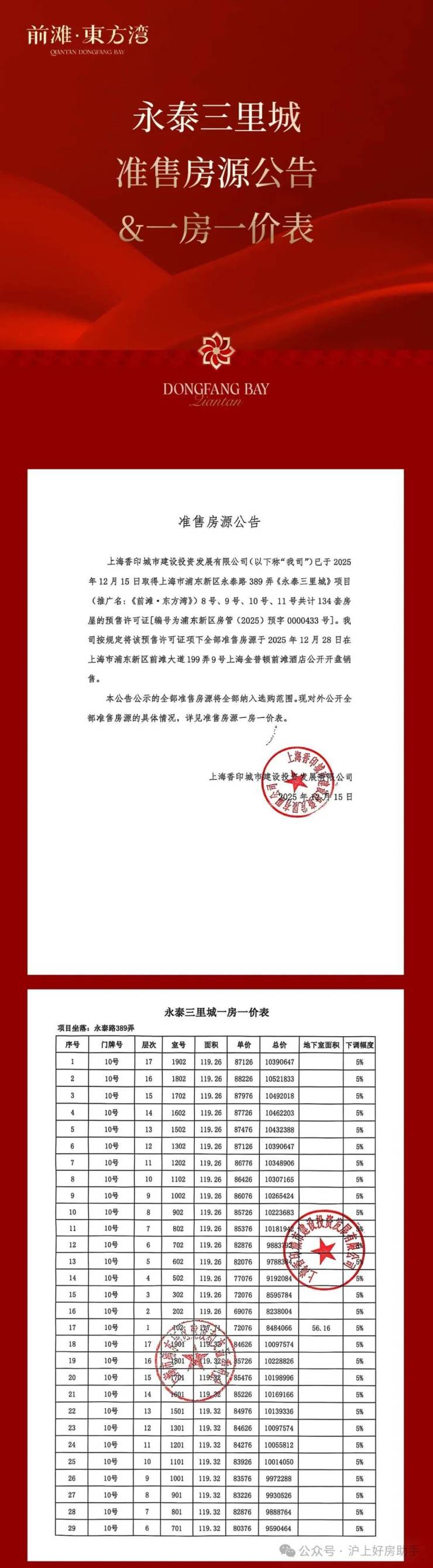 最新消息,浦东中环旁+1站前滩+11号线直线约200米——前滩·東方湾已取证,12月17日开启认购,过会均价仅“8字头”,总价约711万起!