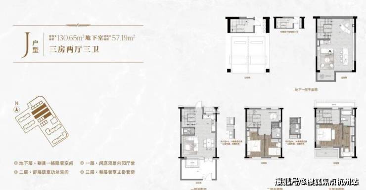 一楼和地下室主社交和志趣,二楼是子女的房间,三楼是主人休憩区。