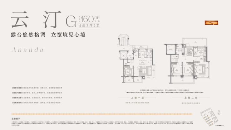 建面约160m上叠,4房2厅3卫,共计约38套,上叠的户型布局其本与下叠一致,附赠南北露台,边套户型的客厅以及主卧同样也是270°飘窗!