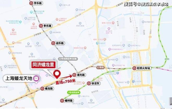 同济蟠龙里距离17号线蟠龙路站/诸光路站步行约750米,整个虹桥虽然新房众多,但真正能称得上步行直达地铁站的轨交盘,寥寥无几。