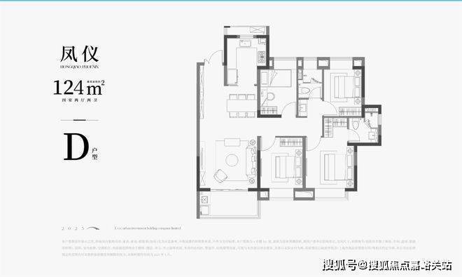 D户型 | 建面约124㎡4房户型图▼
