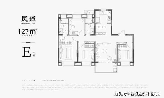 E户型 | 建面约127㎡4房户型图▼