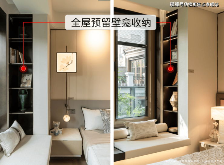 又比如,卧室预留壁龛收纳空间,后期可摆放艺术品、相册、香薰、书籍等。📍保利外滩序售楼处预约热线:400-8787-740👈