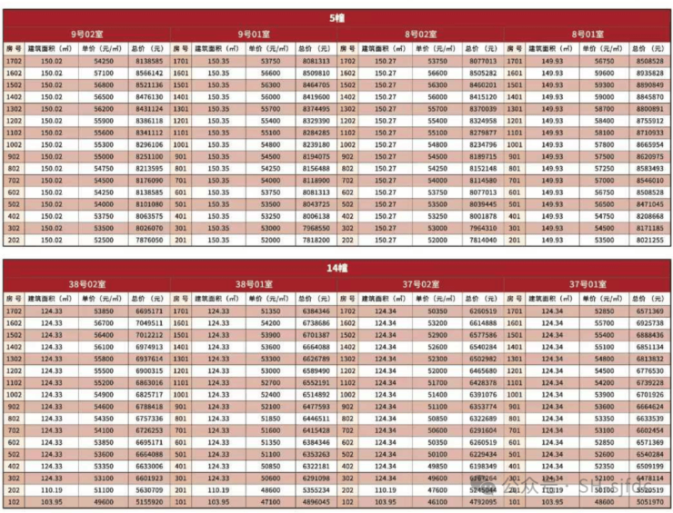 首开132套(面积125m²和148m²)