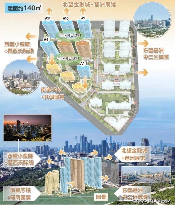 从景观视野看,保利天奕的高楼层优势尽显,向西,能将小蛮腰与琶洲西区天际线的繁华尽收眼底,向东,可饱览琶洲中二区城景,向北,金融城与琶洲展馆的风貌一览无余,向南,则拥有开阔视野,享受独一份的景致。