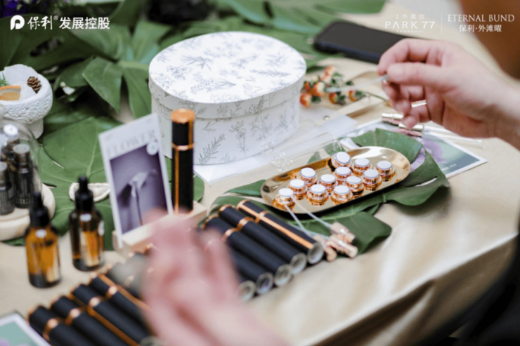 这种理念在开放当天被演绎到极致。项目特别邀约国际香氛品牌doTERRA,在现场设立专属调香体验。专业调香师根据每位到访者的气息记忆,定制专属香氛——或许是你记忆中外滩江风的味道,或许是童年花园的那一缕心安。空间的高定与感官的高定,在这一刻相融共生。