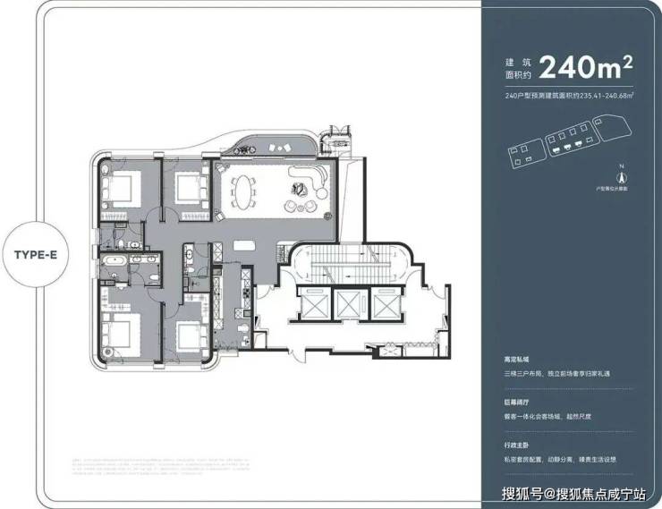 5号楼的3T3产品,是整盘视野最优的3T3楼栋,单体楼栋呈“品”字形3T3布局,南户为180户型,共19套;东西边户为240户型,共38套。高区240西边套及180户型可以收获陆家嘴城市景观视野,180高区阳台不仅能看到部分江景,客厅边窗还能收纳陆家嘴四件套,别人眼中的地标就是你窗前的日常。