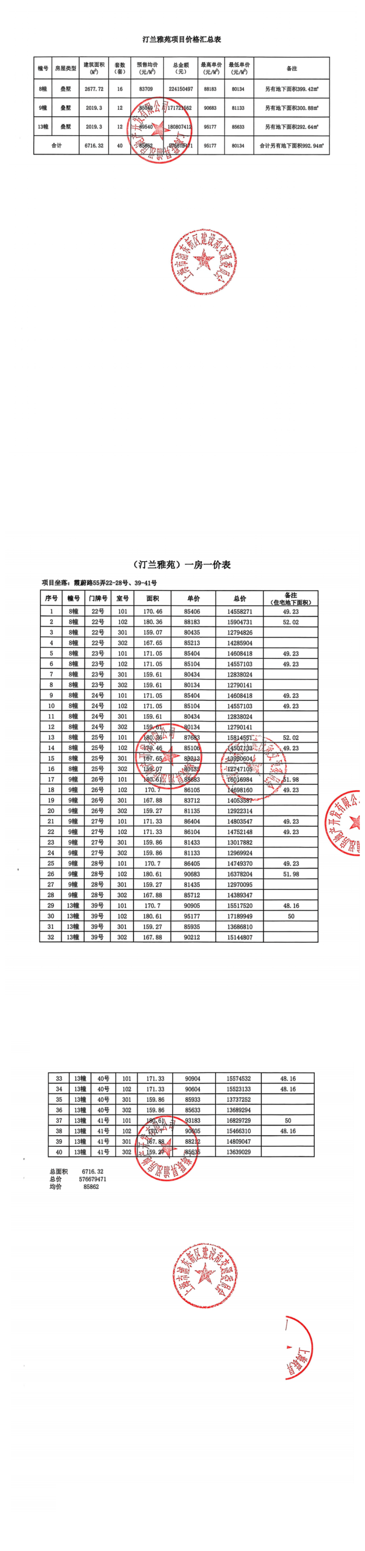 一房一价表: