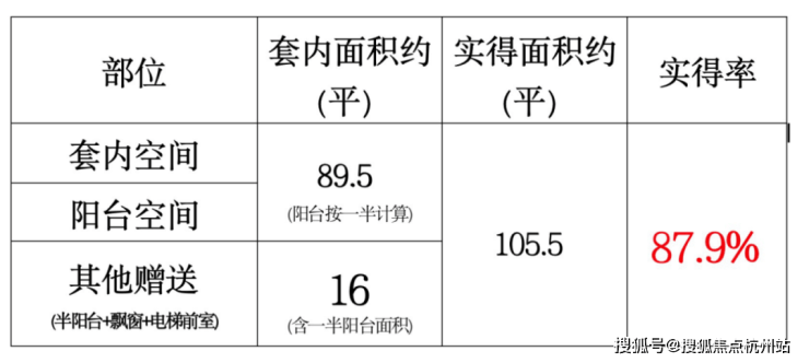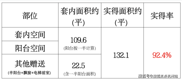 可以看出,对比市面上常规产品约 75-78% 的得房率,就算加上飘窗。实得率在 80% 左右,但本项目的实得率却做到了惊人的 88-92% ,套内面积普遍比常规产品多10%!