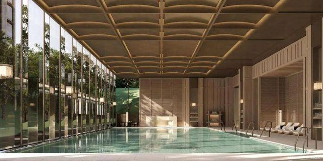 建筑与江共生,成为湾心的时代地标;临江楼栋经过精密计算定制化32.5 °偏转,雕琢出视野的最大界面,将黄浦江的奔涌、城市的天际线与生态绿意尽收眼底,让「看江」 升维为「恒藏生活」 的终极体验。