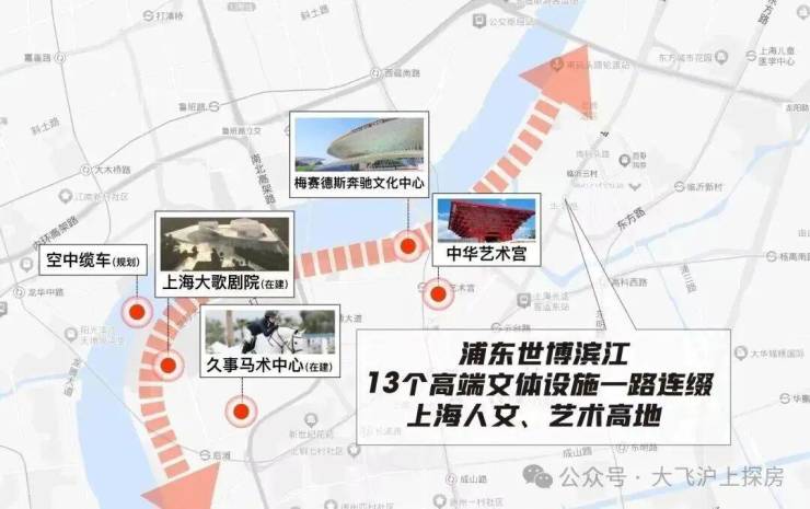 世博-后滩浓缩了全上海规格最高的文体配套,梅赛德斯奔驰文化中心、中华艺术宫、上海大歌剧院、世博展览馆、久事国际马术中心等都在这里,形成一条上海独具一格的文化艺术带。