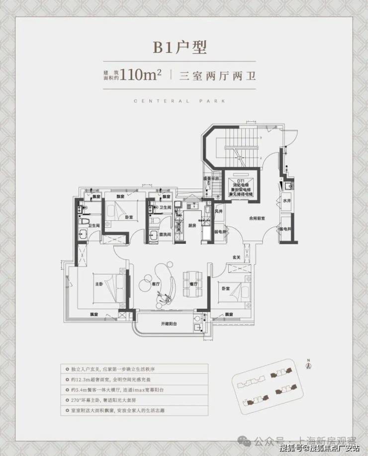 约110㎡3房2厅2卫:三开间朝南,南北通透,总价约630-720万,刚改主力。