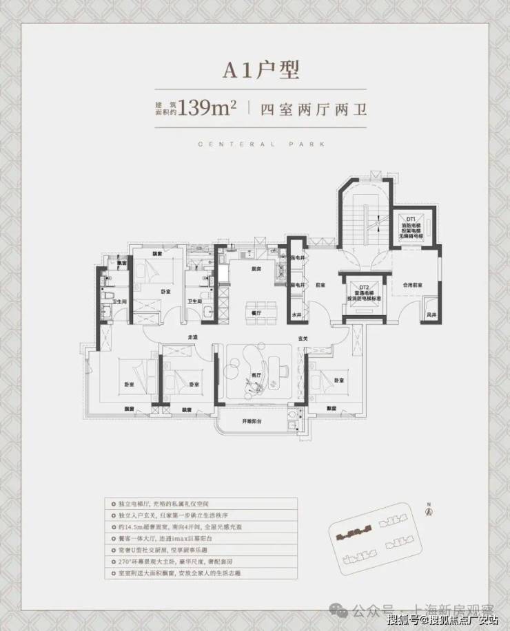 约139㎡4房2厅2卫:类一梯一户,双玄关,横厅设计,总价约850-1060万,改善优选。
