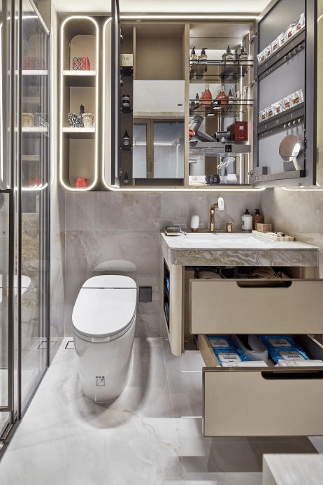 保利天奕首创『女神卫浴四件套』——美妆龙头、美妆镜柜、美妆冰箱和双补光照明,将女性需求做到如此极致的项目,全城难觅第二家!