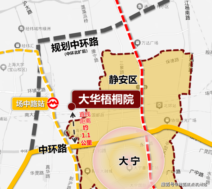 紧邻中环,步行距离7号线场中路站仅约700米,直线距离大宁公园仅约3公里,直线距离桃浦中央绿地仅约4公里!