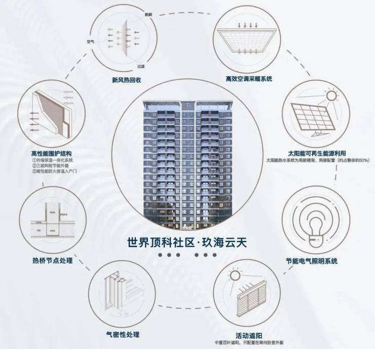 同时通过局部太阳能热水系统、超低能耗围护结构、自动微喷灌系统、海绵城市等技术,使建筑达到绿建三星级别,大大降低能耗,成为面向未来的标杆科技住宅。