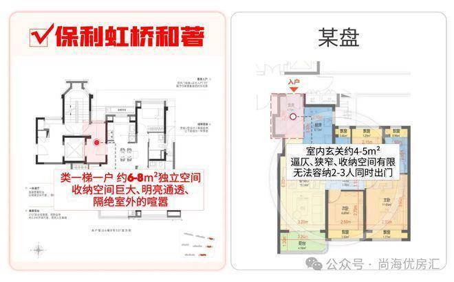 5. 户型优质:全系类一梯一户设计,独立电梯厅还赠送6 - 8㎡入户玄关,得房率高达94%。94㎡三房飞机户型南北通透 ,128㎡四房四开间朝南,居住体验超棒。保利虹桥和著售楼处电话:400-8787-740